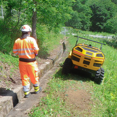 高速道路の本線部、のり面、休憩施設内の草刈りや樹木の剪定・伐採を定期的に行い、景観の向上と環境保全を通じて安心して走行できる高速道路の維持に努めています。さらに、ラジコン草刈機やバックホウ草刈り機の導入など、作業の機械化を進めることで、効率化と省力化を実現し、安全で快適な高速道路を支えています。