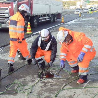 劣化や損傷した舗装、コンクリート構造物、橋梁、道路付属物などの補修や取替工事を計画的に行い、安全に走行できる高速道路の維持に努めています。安心・快適な道路環境を守っています。